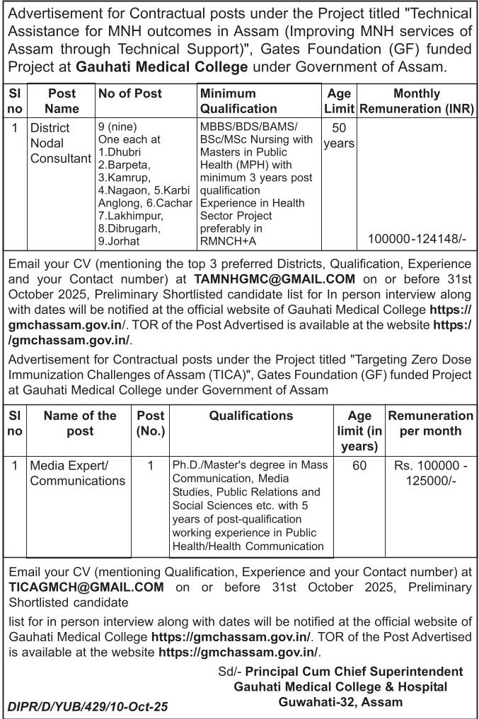 Media Expert/Communications - Gauhati Medical College (TICA Project)